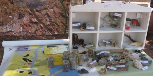 Un stand de sensibilisation au cœur du village à la rencontre d'un géologue et d'un tailleur de pierre pour découvrir les différentes roches que l'on trouve les bâtis.